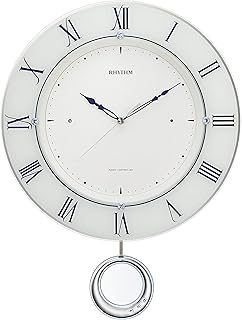 リズム(RHYTHM) 掛け時計 電波 アナログ 振り子 トライメテオ クリスタル 飾り インテリア モデル 白 RHYTHM 8MX402SR03, 44.2x33x6.6cm
