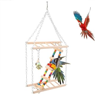 UCOCO 鳥 インコ おもちゃ 吊り下げ 止まり木 かわいい はしご 階段 木製 飾り 玩具 ブランコ 集中力向上 性格改善 運動不足 分離不安 ストレス解消 鳥グッズ バードトイ 鳥おもちゃ 小鳥 セキセイ オウム 噛む玩具 鳥の遊び場 知育玩具 (鳥の遊び場A)
