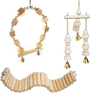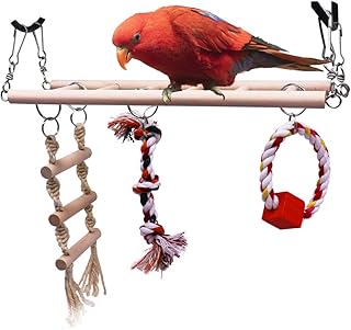 AllBright 止まり木 とまり木 はしご インコ オウム おもちゃ 鳥 ストレス解消 ブランコ 木製
