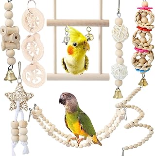 【 夢中になる8点セット 】iikuru インコ おもちゃ 吊り下げ 鳥 止まり木 木製 ブランコ 小鳥 とまり木 はしご 遊び道具 セキセイインコ 玩具 y846