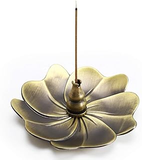 お香ホルダー 亜鉛合金ロータススティック 香炉 スティック/コイル/コーン用香炉ディスク アッシュキャッチャー付き お香ホルダー 亜鉛合金ロータススティック 香炉 香炉 スティック/コイル/コーンインセンス用香炉ディスク アッシュ