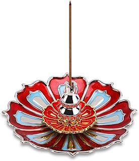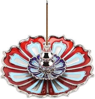 Accmor 3-in-1 合金お香ホルダー 蓮のスティック/コイル/コーンお香ホルダー アッシュキャッチャー付きお香ホルダー レッド ブルー