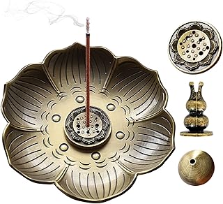 Accmor 3-in-1 合金お香ホルダー 蓮のスティック/コイル/コーンお香ホルダー アッシュキャッチャー付きお香ホルダー 赤銅