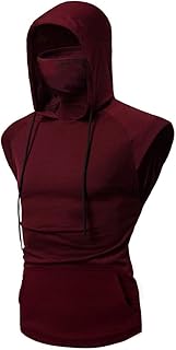 Meilaifushi マスクパーカー マスクウェア ノースリーブ パーカー スウェット 裏毛 無地 メンズ コンプレッション トップス パワーストレッチ スポーツウェア トレーニングウエア フード付き ランニング バイク 冬 出かけ