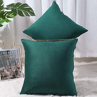 BeBen クッションカバー 18x18インチ 2枚セット 装飾用 ユーロクッションカバー ソフトベルベットクッションケース ソファ ベッド ソファ 寝室 車用 ティール色 18x18インチ