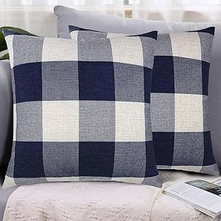 LHKIS クッションカバー 18x18インチ 装飾枕カバー クッションカバー 格子縞 ブルーとホワイト バッファローチェック カウチ ソファ 寝室 車 2枚セット
