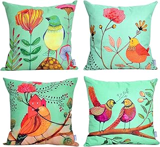 laime クッションカバー リネンコットン枕カバー 4枚セット 装飾正方形枕カバー ソフトソリッドクッションケース 居間/ソファ/寝室/車/アウトドア/ホテル用 18x18インチ ブルーバード