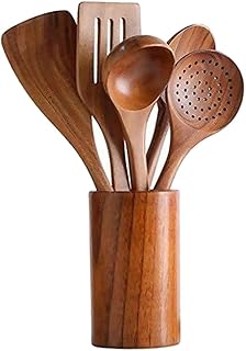 CUTICATE キッチン木製食器 非毒性 調理器具 天然チーク材 スプーン 変形しにくい スパチュラ キッチン調理器具セット - Style2