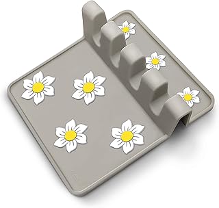 フラワーキッチンスプーンレスト シリコン製調理器具ホルダー 耐熱パッド コンロ調理器具用複数のスロット スパチュラ/スプーン/おたま用ドリップパッド