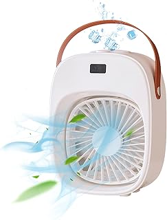 HAIYA【2021最新版】冷風機 冷風扇 強力冷風扇 霧化式扇風機 卓上クーラー 小型冷風扇 強力卓上冷風機 卓上 扇風機 ミニクーラー コンパクト 冷風ファン 3段階風量 加湿 1台多役 氷いれ可能 LEDライト付き 上下角度調整 USB-C給電式 ポータブルクーラー ポータブルエアコン 省エネ 軽量 熱中症と暑さ対策 オフィス 寝室 自宅用