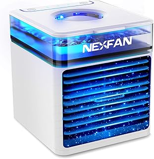 JOOKYO 卓上冷風機 冷風扇 扇風機 ミニクーラー エアコンファン スポット 空気浄化 風量3段階 静音 省エネ USB給電式 氷いれ可能 七色LEDライト付き 自動首振り 強風 携帯便利 除湿 送風 人気 熱中症対策 涼しい 自宅用/事務室用/寝室/オフィス/車中泊 日本語説明書付き ホワイト